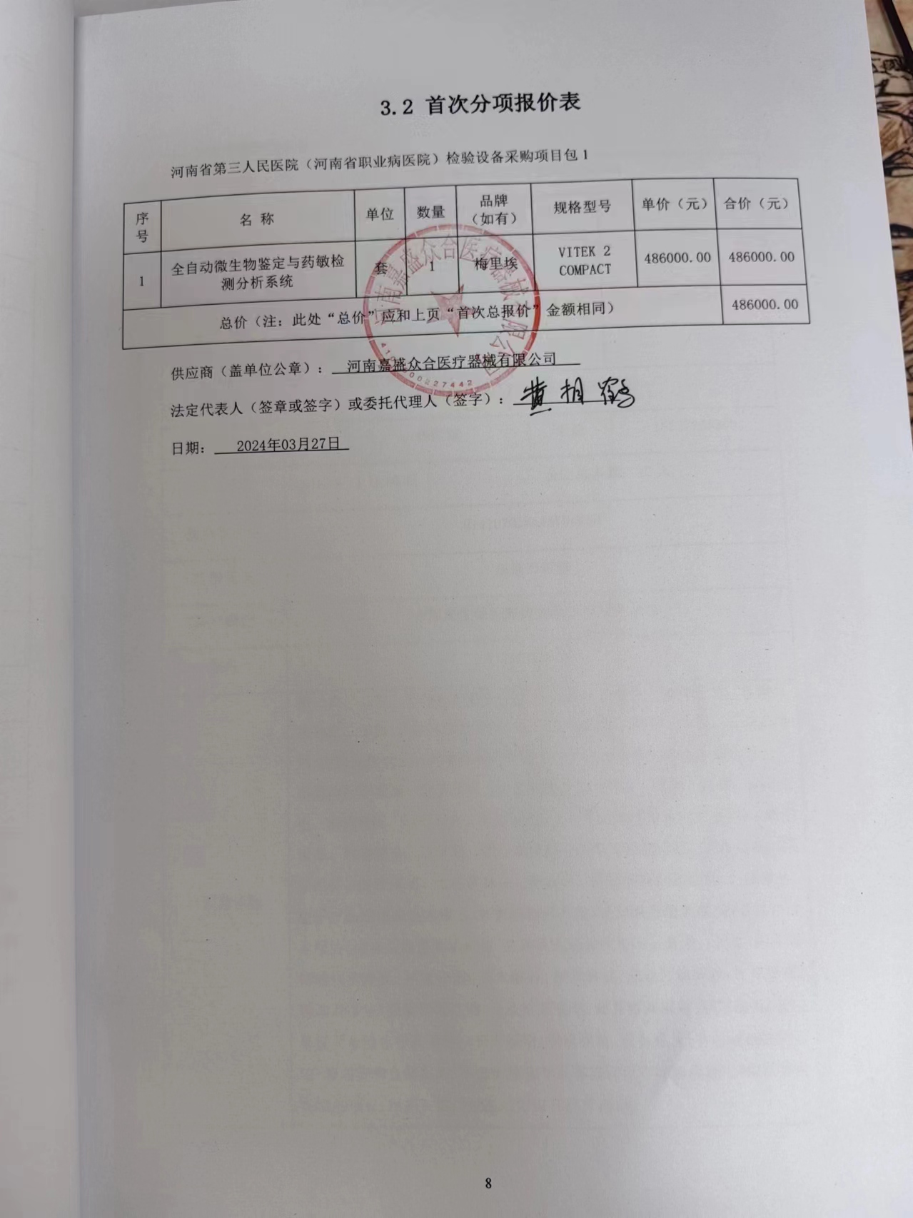 河南省第三人民醫(yī)院(河南省職業(yè)病醫(yī)院)檢驗設備采購項目包1 | 河南嘉盛眾合醫(yī)療器械有限公司 | 河南省新鄉(xiāng)市紅旗區(qū)金穗大道與新二街交叉口東北角迎賓大廈(靖業(yè)跨境貿易大廈)第31層14號 | 478000.00 | 金額 | 元 | ||||