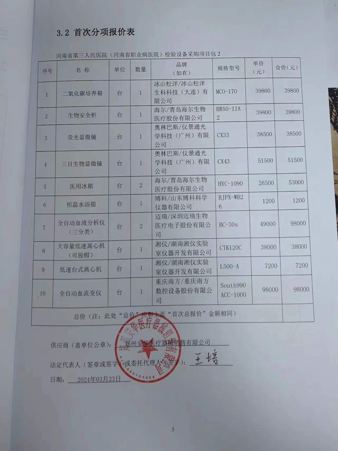 河南省第三人民醫(yī)院(河南省職業(yè)病醫(yī)院)檢驗設備采購項目包2 | 鄭州安華醫(yī)療器械銷售有限公司 | 河南省鄭州市航空港經濟綜合實驗區(qū)古城三路37號美創(chuàng)國際科技產業(yè)園B5-1-02號2層-3層 | 418000.00 | 金額 | 元 | ||||