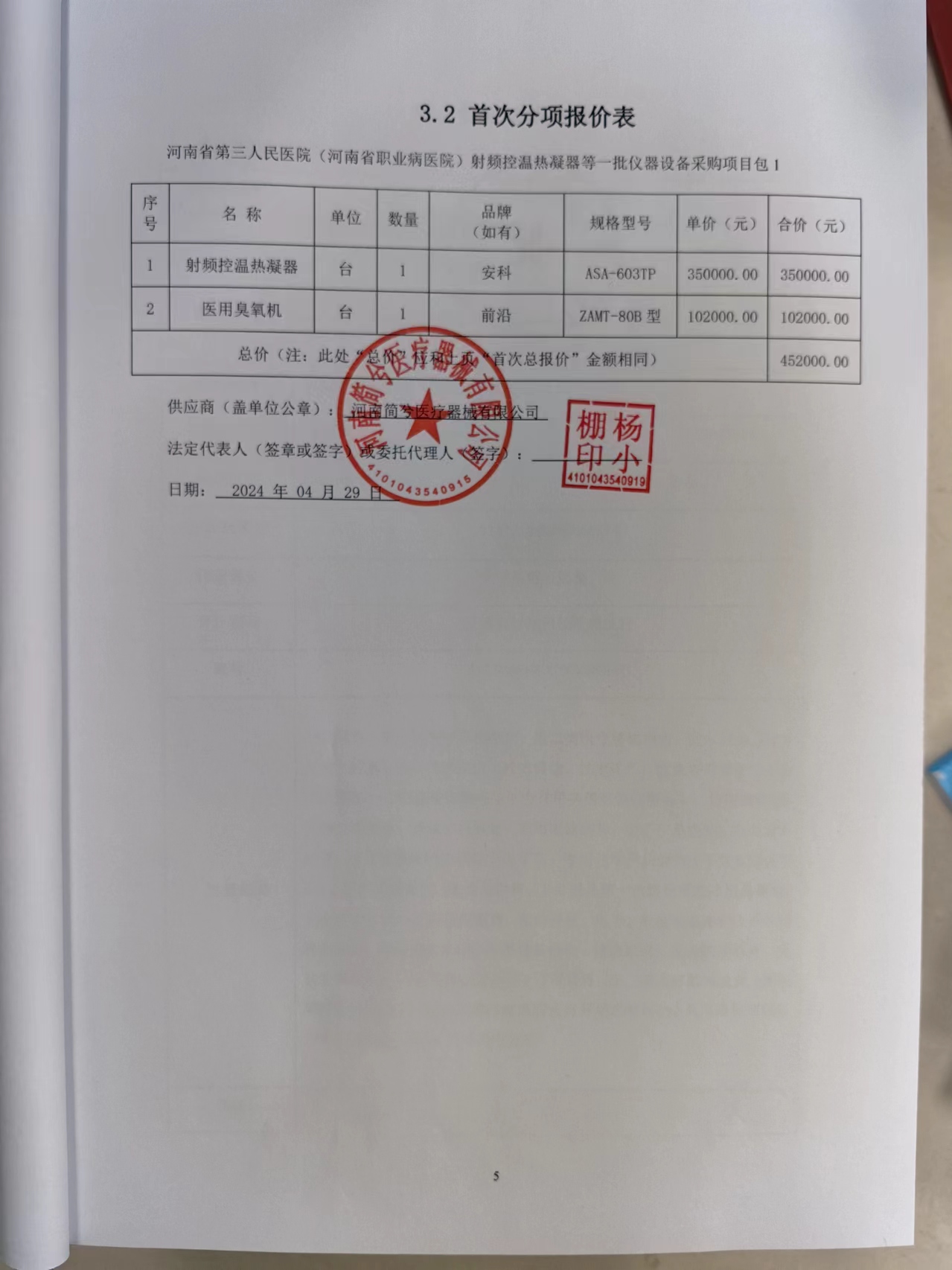 2、采購(gòu)項(xiàng)目名稱(chēng):河南省第三人民醫(yī)院(河南省職業(yè)病醫(yī)院)射頻控溫?zé)崮鞯纫慌鷥x器設(shè)備采購(gòu)項(xiàng)目