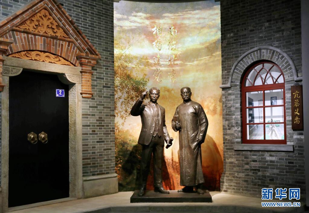 6月1日拍攝的中共一大紀念館內(nèi)的“南陳北李,相約建黨”主題雕塑。新華社記者 劉穎 攝