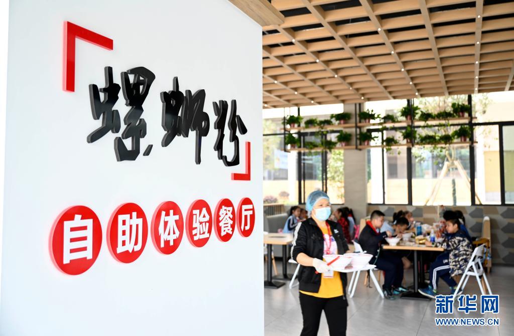 2021年4月29日,在廣西柳州螺螄粉產(chǎn)業(yè)園,參加研學(xué)團的學(xué)生在一家螺螄粉企業(yè)里品嘗螺螄粉。新華社發(fā)(黎寒池 攝)