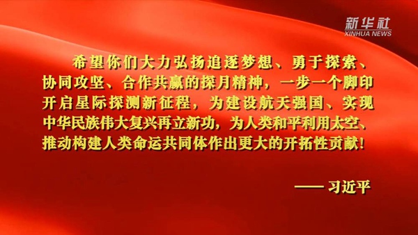 ?? 習(xí)近平總書記曾用“追逐夢想、勇于探索、協(xié)同攻堅、合作共贏”這16個字高度概括總結(jié)了“探月精神”,勉勵航天工作者們一步一個腳印開啟星際探測新征程,為建設(shè)航天強國、實現(xiàn)中華民族偉大復(fù)興再立新功。