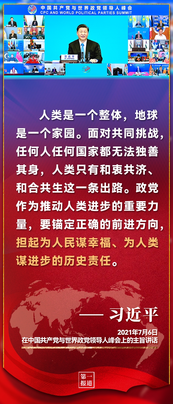 在中國共產黨成立100周年之際,習近平同來自160多個國家的500多個政黨和政治組織等領導人、逾萬名政黨和各界代表共聚“云端”,探討“為人民謀幸福與政黨的責任”這個重大命題。