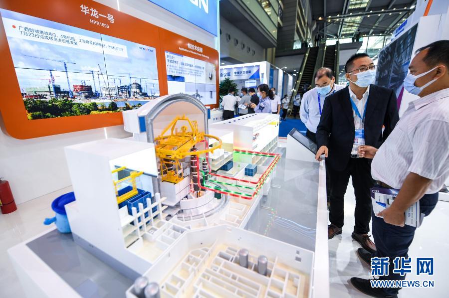 11月11日,在深圳舉行的第二十二屆中國國際高新技術(shù)成果交易會(huì)(高交會(huì))上,參觀者在中廣核展臺(tái)了解“華龍一號(hào)”核電技術(shù)。新華社記者 毛思倩 攝