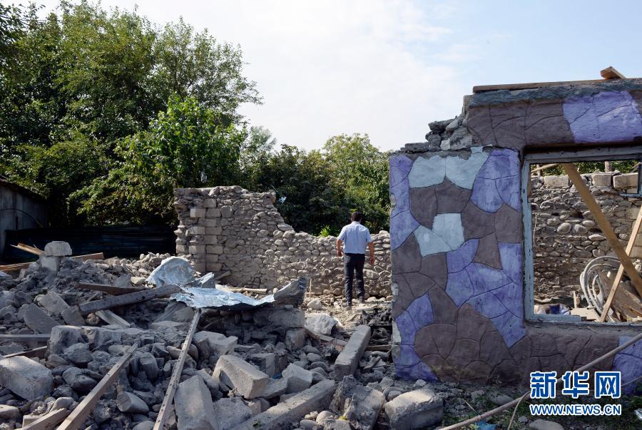 這是9月29日在阿塞拜疆臨近納卡邊境的塔塔爾地區(qū)拍攝的在沖突中受損的房屋。新華社發(fā)(巴巴耶夫攝)