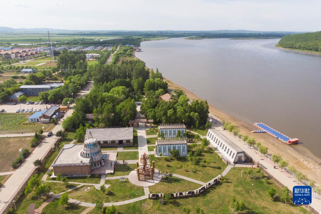 這是6月23日拍攝的黑龍江省雙鴨山市饒河縣四排赫哲族鄉(xiāng)四排村赫哲風(fēng)情園(無(wú)人機(jī)照片)。新華社記者 張濤 攝
