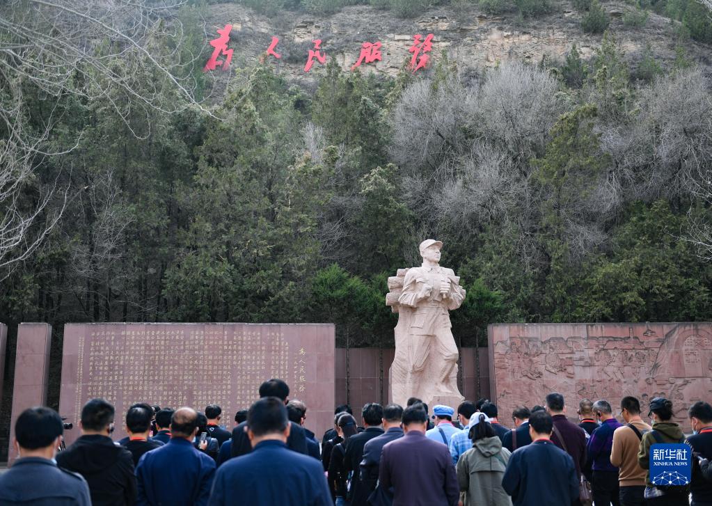 黨員干部在陜西省延安市張思德廣場進行現(xiàn)場教學活動(3月29日攝)。新華社記者 張博文 攝