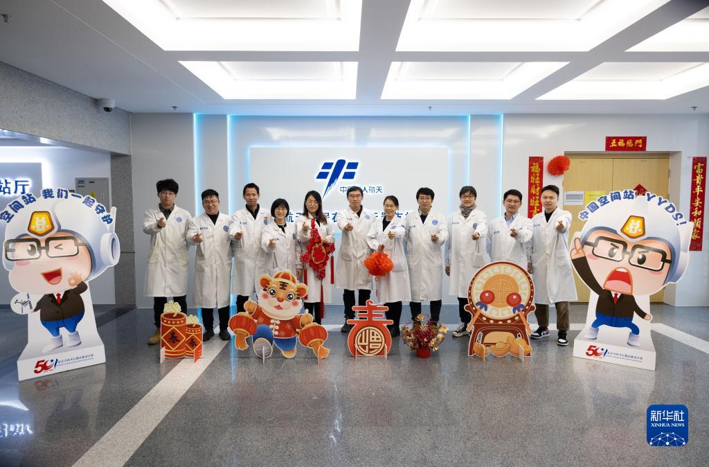 1月30日,在航天科技集團(tuán)五院在軌航天器支持中心數(shù)字空間站外,空間站任務(wù)飛控試驗隊科研人員合影留念。新華社記者 金立旺 攝