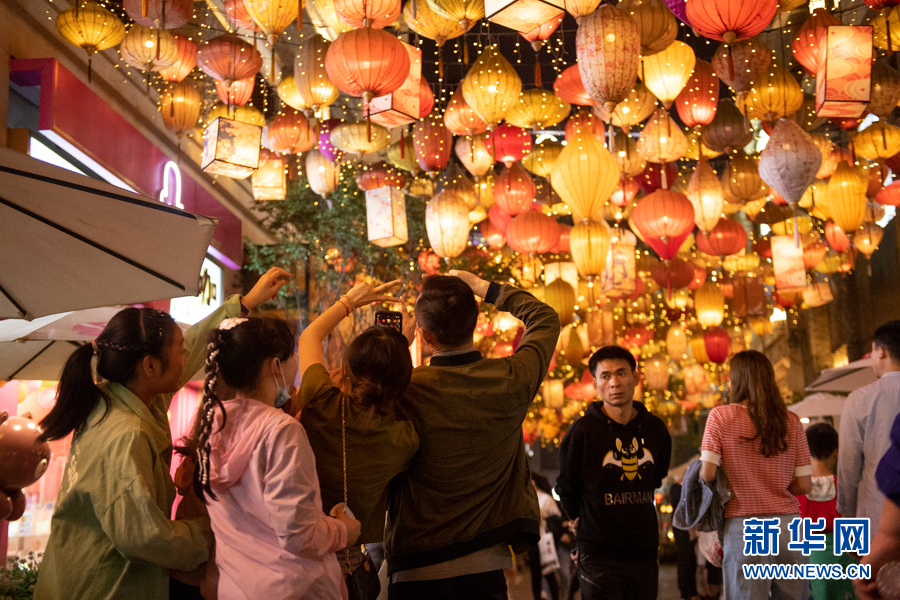 錯(cuò)落有致的吊腳小樓,中國(guó)風(fēng)滿滿的虎年燈飾,虎年春節(jié)假期,重慶“十八梯”傳統(tǒng)風(fēng)貌區(qū)內(nèi)游人如織,市民與游客紛紛來(lái)此感受屬于“老重慶的年味”。