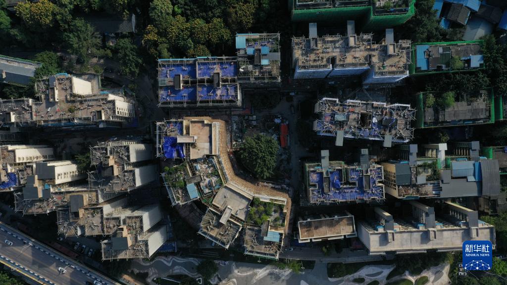 這是重慶市北碚區(qū)新房子片區(qū)老舊小區(qū)改造項目施工現(xiàn)場(2021年10月23日攝,無人機照片)。新華社發(fā)(秦廷富攝)