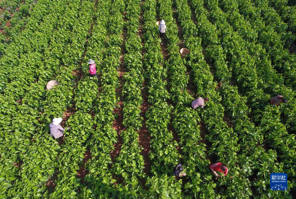 云南尋甸縣金所街道草海子村的農婦在采摘蠶桑葉(2020年5月16日攝,無人機照片)。當地大力發(fā)展蠶桑等特色種養(yǎng)殖和加工產業(yè),帶動農民脫貧增收致富。新華社記者 楊宗友 攝