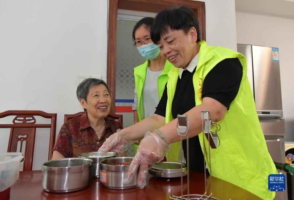 在江西省南昌市東湖區(qū)彭家橋街道文教路北社區(qū),“幸福食堂”的義工在給社區(qū)內出行困難的老人提供送餐服務(2020年7月29日攝)。從2018年12月起,南昌市東湖區(qū)彭家橋街道在社區(qū)打造以黨建引領、社區(qū)主導、愛心企業(yè)贊助的“幸福食堂”,專門為社區(qū)獨居、孤寡及生活困難的老年人提供營養(yǎng)餐,以此進一步完善社區(qū)居家互助養(yǎng)老服務。新華社記者 彭昭之 攝