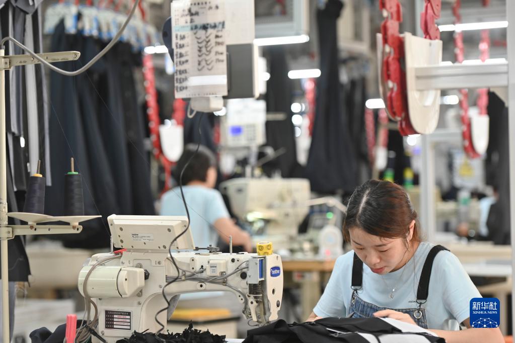 在位于福建省泉州市經濟技術開發(fā)區(qū)的九牧王西褲智能化生產車間,工人在自動化西褲吊掛流水線上作業(yè)(2021年7月30日攝)。近年來,泉州市稅務部門積極落實減稅降費,出臺一系列穩(wěn)定工業(yè)、扶持外貿、鼓勵企業(yè)研發(fā)創(chuàng)新的政策,服務實體經濟發(fā)展。新華社記者 宋為偉 攝