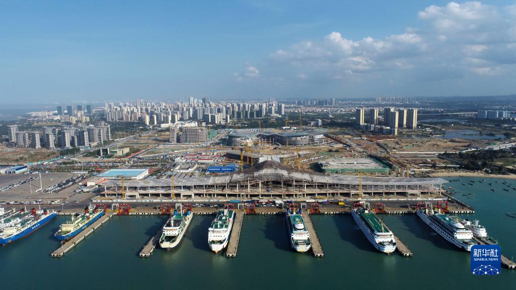 這是2022年2月11日拍攝的??谛潞8劭瓦\(yùn)綜合樞紐項目施工現(xiàn)場(無人機(jī)照片)。新華社發(fā)(黎多江 攝)