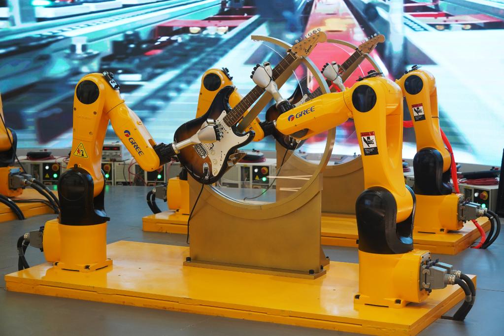 在位于贛州市的格力小鎮(zhèn),機(jī)器人樂隊正在演奏音樂(2月18日攝)。新華社記者萬象攝