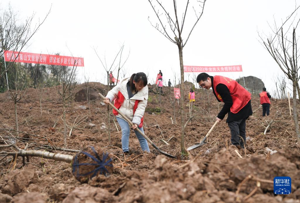 3月1日,在重慶市璧山區(qū),參加義務植樹活動的志愿者在植樹。新華社記者 王全超 攝