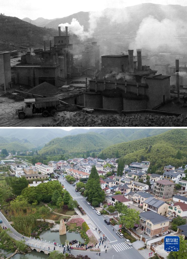 30多年前,依靠優(yōu)質(zhì)的石灰?guī)r資源,“采石經(jīng)濟”紅紅火火,可環(huán)境卻遭了殃,植被破壞、灰塵漫天、溪水渾濁。痛定思痛,余村人決定關停水泥廠和石灰礦,求還綠水青山。