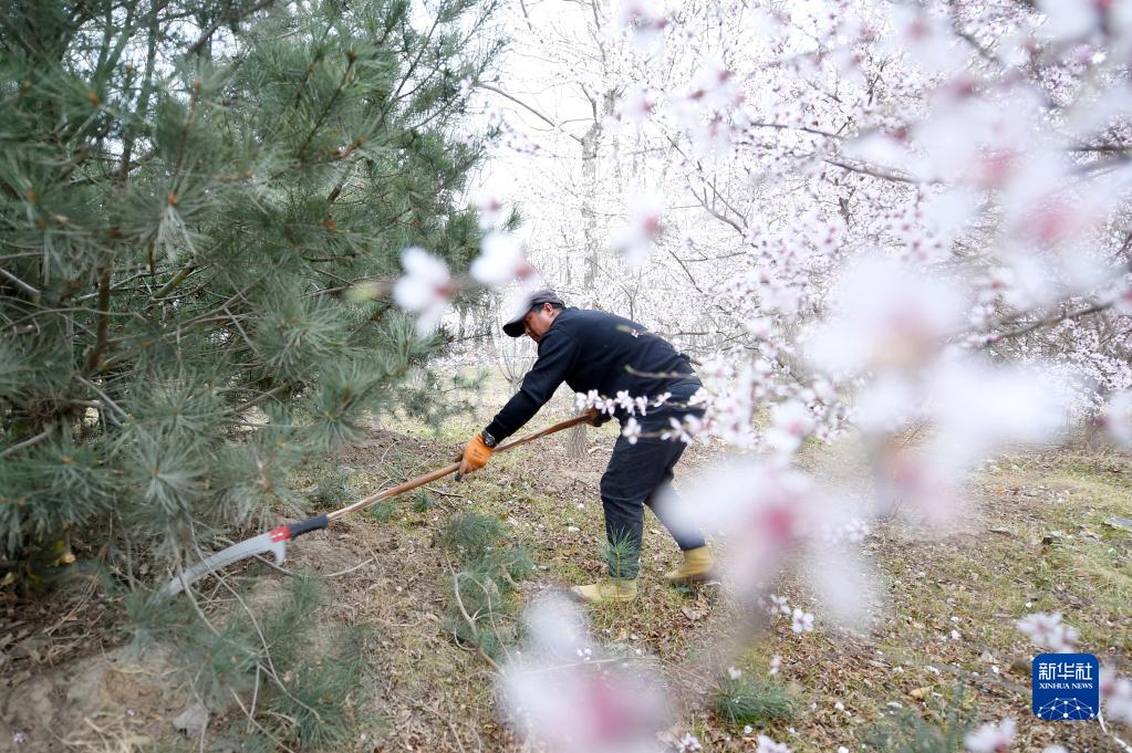 工作人員在雄安新區(qū)千年秀林修剪樹(shù)木(3月29日攝)。新華社記者 駱學(xué)峰 攝