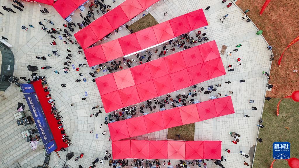 這是3月10日在長沙望城經(jīng)開區(qū)銅官工業(yè)園拍攝的招聘活動(dòng)現(xiàn)場(無人機(jī)照片)。新華社記者 陳澤國 攝