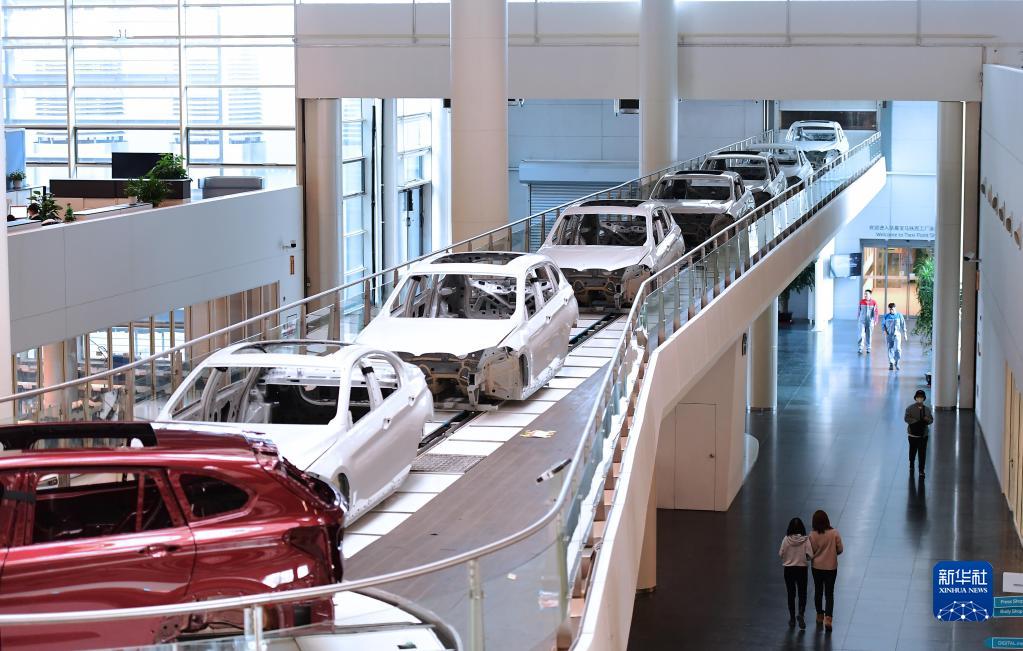 在華晨寶馬沈陽鐵西工廠,生產(chǎn)中的車輛穿過辦公區(qū)(2月16日攝)。新華社記者 楊青 攝