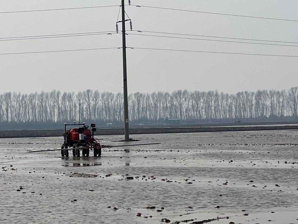 在北大荒集團(tuán)建三江分公司創(chuàng)業(yè)農(nóng)場有限公司的一塊水田里,3臺無人駕駛智能攪漿整地機(jī)正在作業(yè)。農(nóng)機(jī)自主前進(jìn)、后退,到地頭還能自動轉(zhuǎn)彎。農(nóng)機(jī)作業(yè)后,黑土和水摻在了一起,原本高低不平的水面,變得平坦許多。