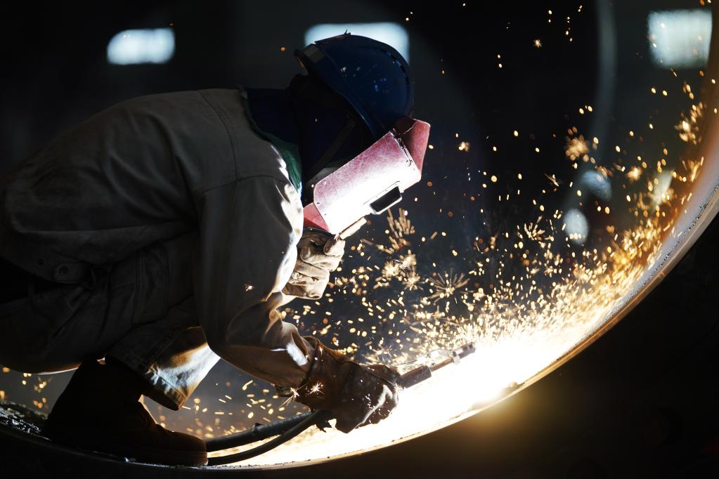 4月14日,在哈電集團(tuán)哈爾濱鍋爐廠有限責(zé)任公司車間,工人在進(jìn)行生產(chǎn)作業(yè)。新華社記者王建威 攝