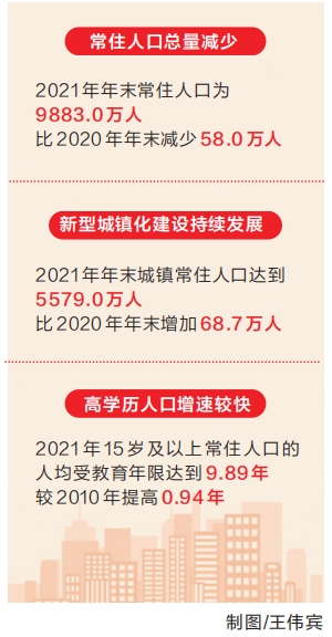 高學(xué)歷人口增速較快。2021年,全省15歲及以上常住人口的人均受教育年限達(dá)到9.89年,較2020年提高0.10年,較2010年提高0.94年。同時,全省常住人口中,每10萬人中擁有大學(xué)(指大專及以上)文化程度的人口為12244人,高中(含中專)15739人,初中36619人,小學(xué)24821人。大學(xué)(指大專及以上)文化程度的人口增長最快。(記者 李鵬)