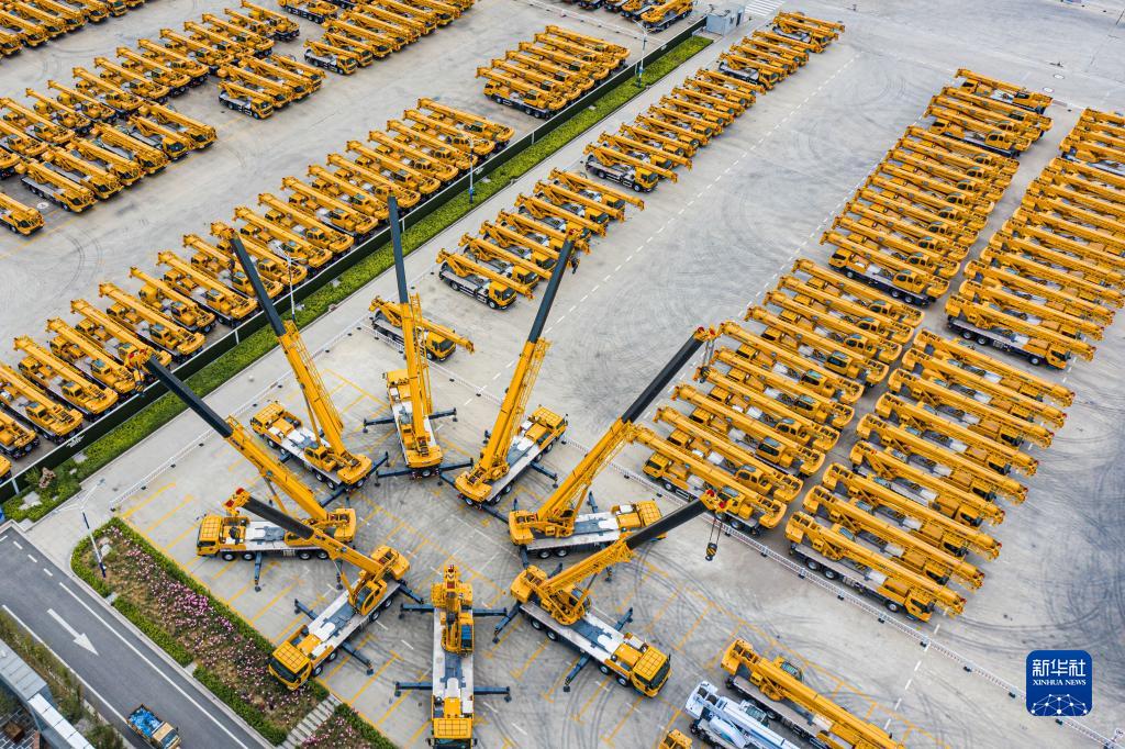 這是5月9日拍攝的江蘇徐工集團重型機械有限公司的產品調試場(無人機照片)。新華社發(fā)