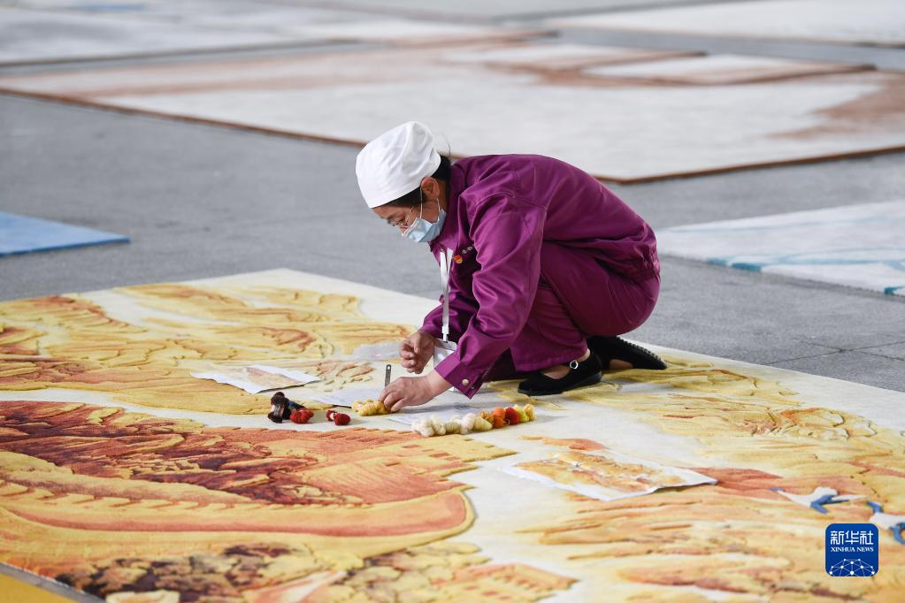 2021年6月7日,在青海圣源地毯集團有限公司生產(chǎn)車間內(nèi),工人在制作藏毯。新華社記者 張龍 攝