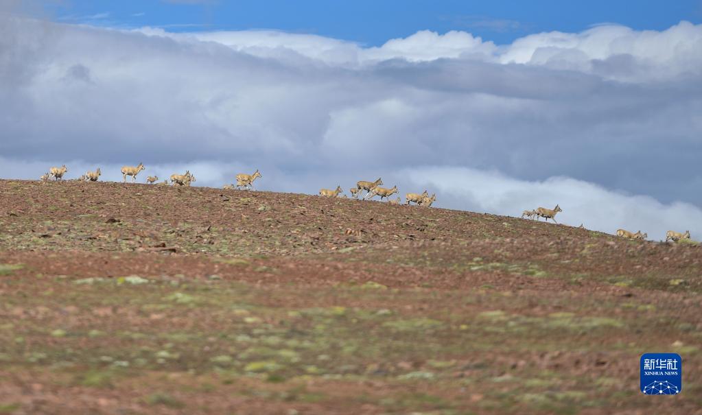 這是在可可西里卓乃湖區(qū)域拍攝的藏羚羊(2020年7月7日攝)。新華社記者 張龍 攝