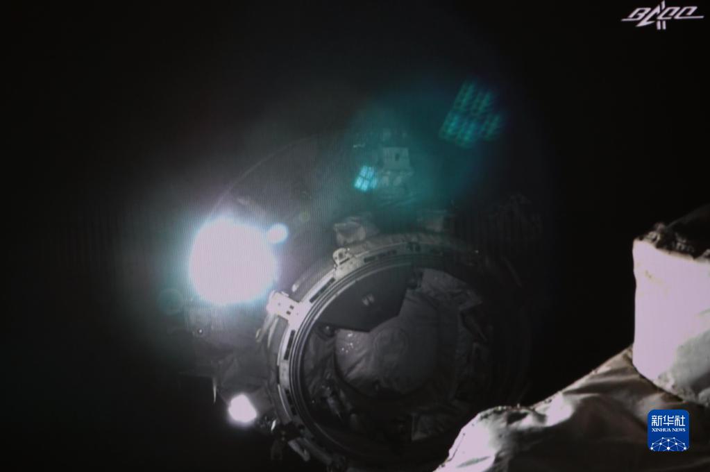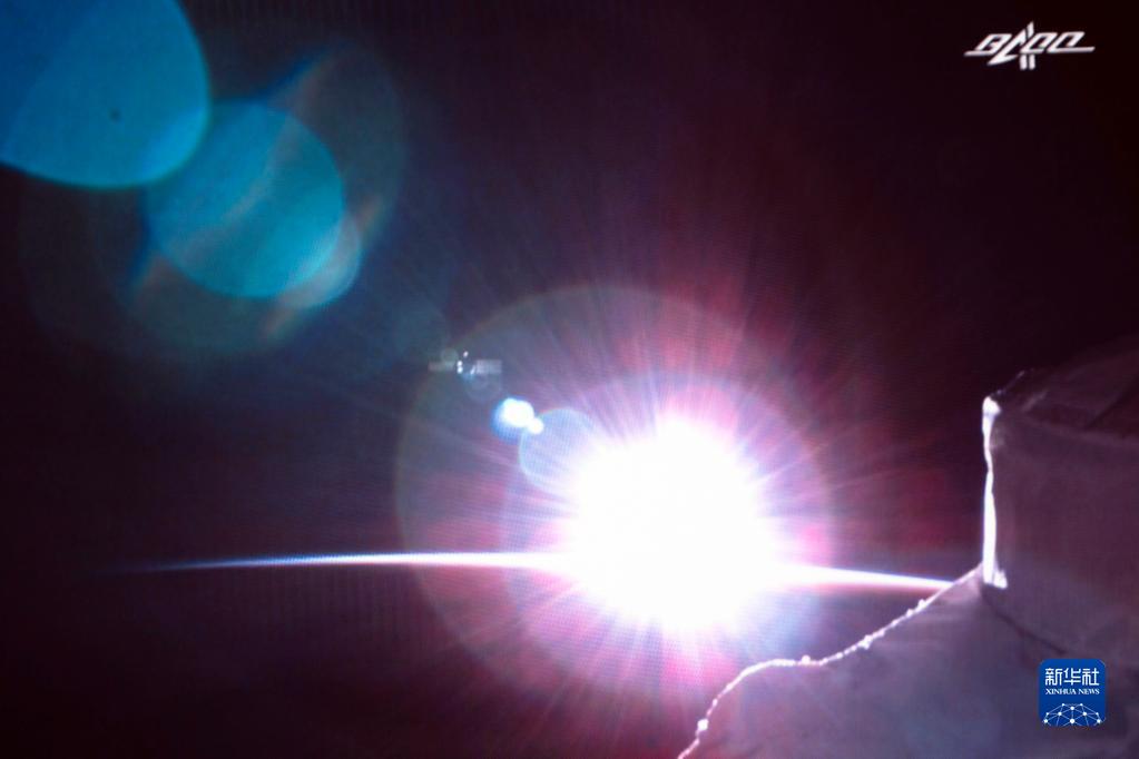 7月17日在北京航天飛行控制中心拍攝的天舟三號貨運飛船撤離空間站組合體圖像。這是天和核心艙外景相機實時圖像。新華社記者 郭中正 攝