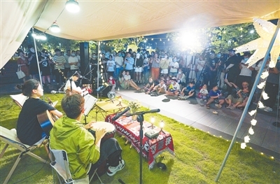 夜幕降臨,華燈初上,市區(qū)街頭巷尾開始熱鬧起來:夏季集市里,人群熙熙攘攘,交談聲、討價(jià)聲交織在一起;書店里,老人、年輕人、孩子靜坐閱讀;健身房里,跑步、練瑜伽,各有所愛;小廣場,音樂愛好者現(xiàn)場開唱……