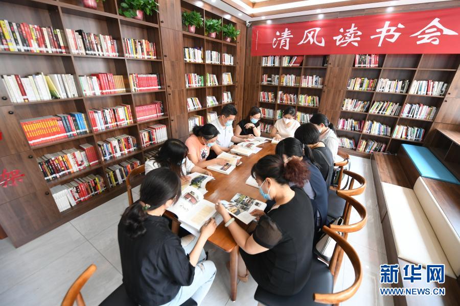 2020年6月23日,河北省棗強縣紀委監(jiān)委組織部分單位黨員干部,在縣文化廣電和旅游局舉行“清風(fēng)讀書會”。新華社記者 李曉果 攝