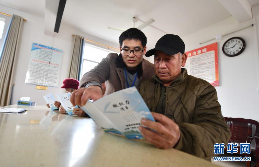 2020年12月17日,在廣西鹿寨縣鹿寨鎮(zhèn)波井村政務(wù)服務(wù)中心,紀檢監(jiān)察干部(前左)向村民介紹“微權(quán)力”清單。 新華社記者 黃孝邦 攝