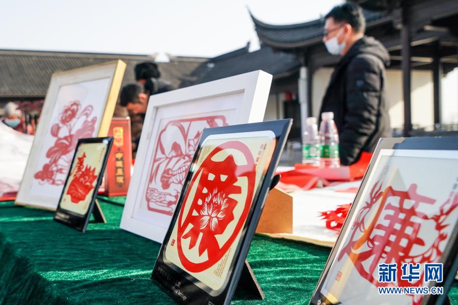 1月14日,江蘇省連云港市灌云縣紀委監(jiān)委在當(dāng)?shù)赝d鎮(zhèn)梅園文化廣場舉行廉政文化進鄉(xiāng)村活動。這是在活動現(xiàn)場拍攝的廉政主題剪紙。 新華社記者 李博 攝