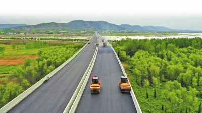 西淅高速張灣特大橋借助數(shù)字化力量進(jìn)行瀝青攤鋪碾壓施工。魏鵬旭 攝
