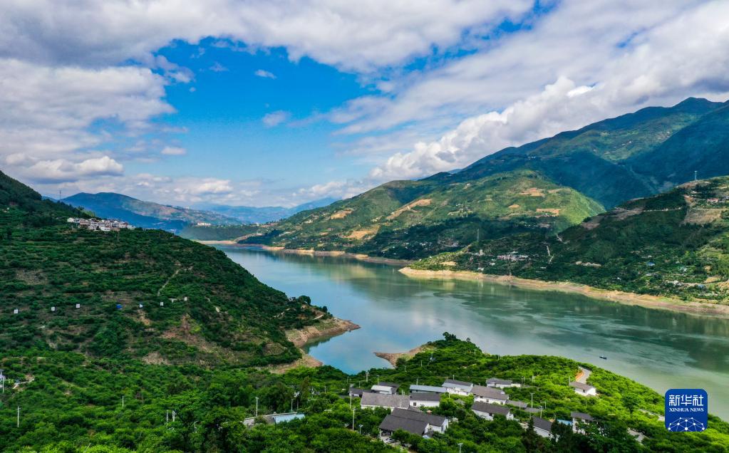 這是2022年5月19日拍攝的長(zhǎng)江巫山段曲尺鄉(xiāng)一帶景色(無人機(jī)照片)。新華社記者 王全超 攝