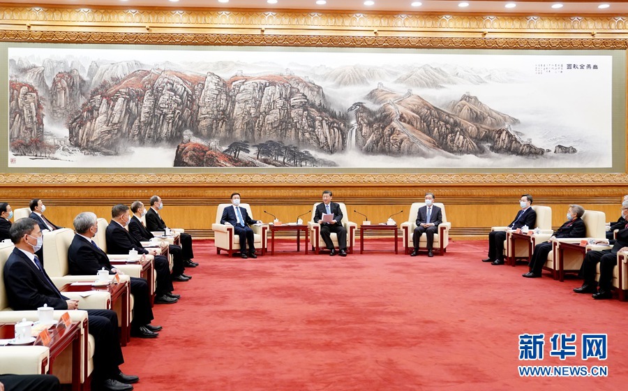 在聽取萬鄂湘致辭后,習(xí)近平發(fā)表了重要講話。他強(qiáng)調(diào), 2020 年是新中國(guó)歷史上極不平凡的一年。面對(duì)嚴(yán)峻復(fù)雜的形勢(shì)任務(wù)、前所未有的風(fēng)險(xiǎn)挑戰(zhàn),中共中央團(tuán)結(jié)帶領(lǐng)全黨全國(guó)各族人民齊心協(xié)力、迎難而上,統(tǒng)籌疫情防控和經(jīng)濟(jì)社會(huì)發(fā)展,統(tǒng)籌深化改革開放和應(yīng)對(duì)外部壓力,統(tǒng)籌抓好 “ 六穩(wěn) ” 工作和落實(shí) “ 六保 ” 任務(wù),決勝全面建成小康社會(huì)、決戰(zhàn)脫貧攻堅(jiān)。經(jīng)過艱苦努力,疫情防控取得重大戰(zhàn)略成果,經(jīng)濟(jì)增長(zhǎng)率先實(shí)現(xiàn)由負(fù)轉(zhuǎn)正,脫貧攻堅(jiān)任務(wù)如期完成, “ 十三五 ” 圓滿收官, “ 十四五 ” 全面擘畫,全面建成小康社會(huì)取得偉大歷史性成就。這是中國(guó)共產(chǎn)黨堅(jiān)強(qiáng)領(lǐng)導(dǎo)的結(jié)果,也是包括各民主黨派、工商聯(lián)和無黨派人士在內(nèi)的全國(guó)各族人民萬眾一心、頑強(qiáng)拼搏的結(jié)果。