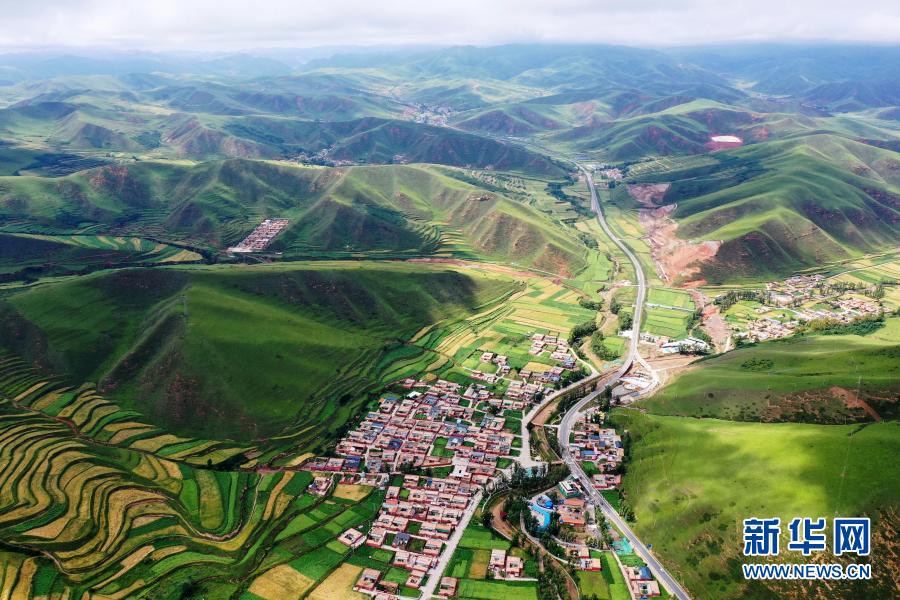 這是2020年8月12日拍攝的甘肅省甘南藏族自治州卓尼縣阿子灘鎮(zhèn)阿子灘村(無人機(jī)照片)。新華社記者 邢廣利 攝