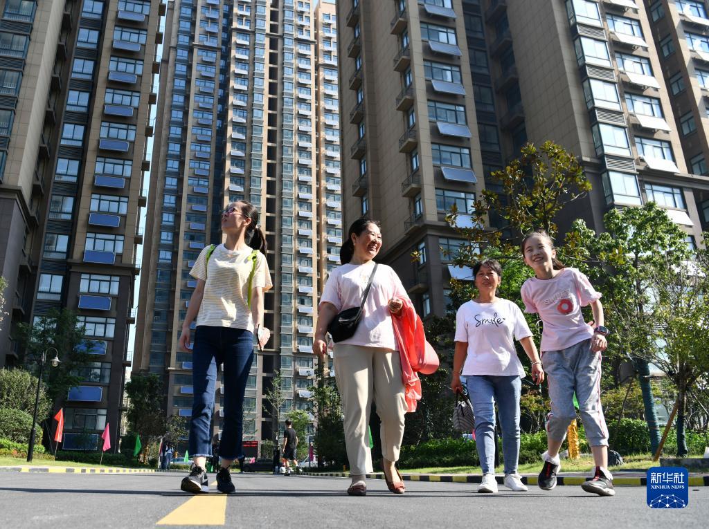 安徽省合肥市包河區(qū)同安街道甘棠苑小區(qū)回遷居民在小區(qū)內(nèi)散步(2020年9月5日攝)。新華社記者 劉軍喜 攝