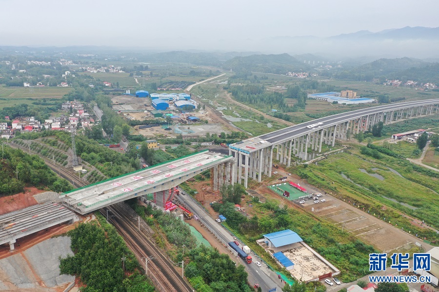 新華網(wǎng)鄭州9月22日電(范作言)9月20上午8:30,在河南南陽澠淅高速(澠池-淅川)跨寧西鐵路(南京-西安)轉(zhuǎn)體橋施工現(xiàn)場,隨著2臺(tái)牽引機(jī)的轟鳴啟動(dòng),重達(dá)21000噸的T構(gòu)梁緩慢順時(shí)針旋轉(zhuǎn),在歷時(shí)90分鐘旋轉(zhuǎn)67.5°后成功轉(zhuǎn)體,平穩(wěn)跨越了寧西鐵路和G312國道,在空中實(shí)現(xiàn)“華麗轉(zhuǎn)身”和精準(zhǔn)對(duì)接。