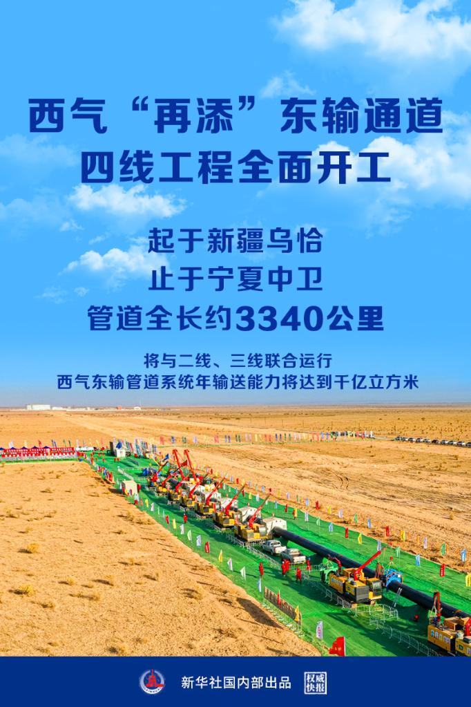 ????新華社北京9月28日電(記者戴小河)國家管網(wǎng)集團西氣東輸四線工程28日正式開工,工程起于新疆烏恰縣,止于寧夏中衛(wèi)市,管道全長約3340公里。