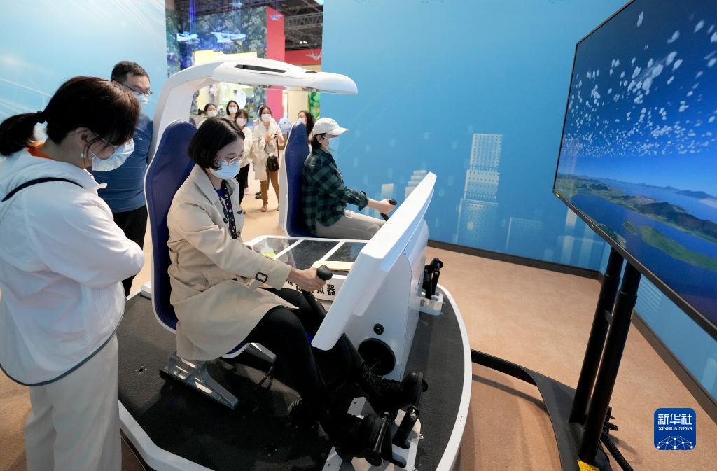 10月7日,觀眾在“奮進(jìn)新時(shí)代”主題成就展上體驗(yàn)操縱直升機(jī)訓(xùn)練模擬器。當(dāng)日是國(guó)慶長(zhǎng)假的最后一天,大批觀眾來(lái)到北京展覽館參觀“奮進(jìn)新時(shí)代”主題成就展。新華社記者 王毓國(guó) 攝