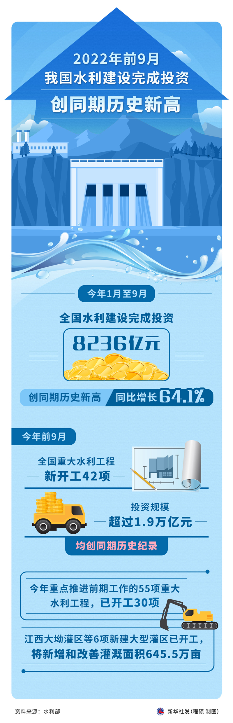 水利部副部長(zhǎng)劉偉平11日表示,今年1月至9月全國(guó)水利建設(shè)完成投資8236億元,創(chuàng)同期歷史新高。