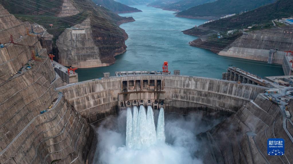 金沙江上,白鶴灘水電站,一座拱形大壩橫亙在高聳的山谷間,承受1650萬噸的最大水推力。