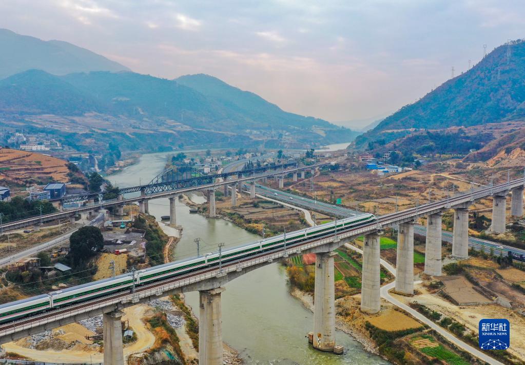2022年12月26日,蜿蜒千里的新成昆鐵路全線貫通運(yùn)營。復(fù)興號(hào)動(dòng)車組從成都南站發(fā)出,沿著現(xiàn)代化的鐵路,奔馳在崇山峻嶺間。