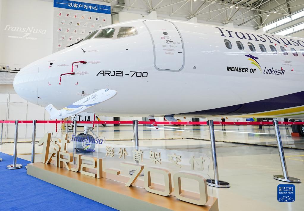 這是2022年12月18日拍攝的正式交付首家海外客戶的國產(chǎn)噴氣式支線客機(jī)ARJ21。新華社發(fā)