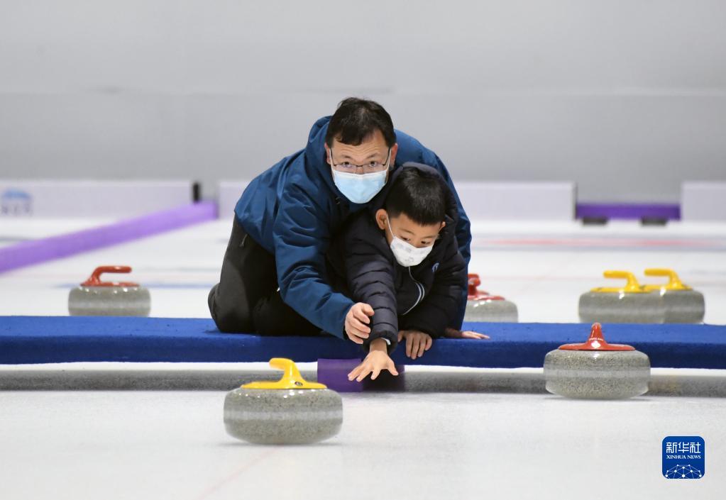 2023年1月23日,游客在“冰立方”冰上運(yùn)動中心體驗(yàn)冰壺運(yùn)動。新華社記者 任超 攝