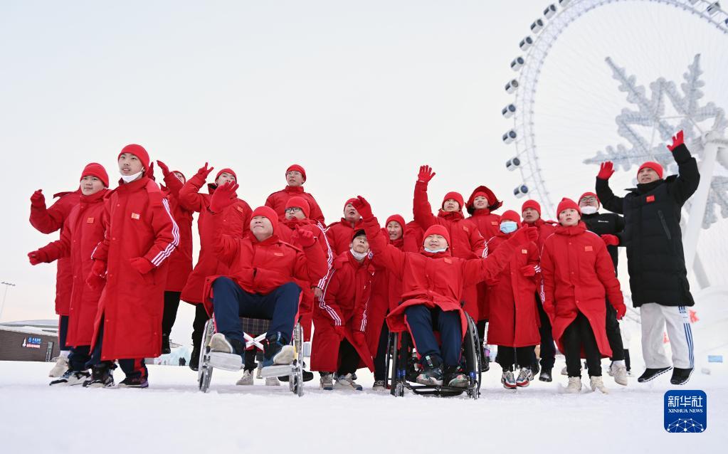 2023年2月9日,黑龍江省殘疾人后備運(yùn)動員集訓(xùn)隊(duì)在第七屆中國殘疾人冰雪運(yùn)動季北方主場活動現(xiàn)場合影。新華社記者 李賀 攝