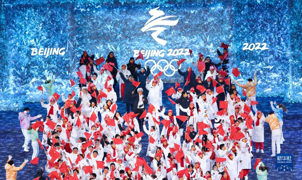 2022年2月20日晚,北京第二十四屆冬季奧林匹克運(yùn)動會閉幕式在國家體育場舉行。這是中國代表團(tuán)成員入場。新華社記者 蘭紅光 攝